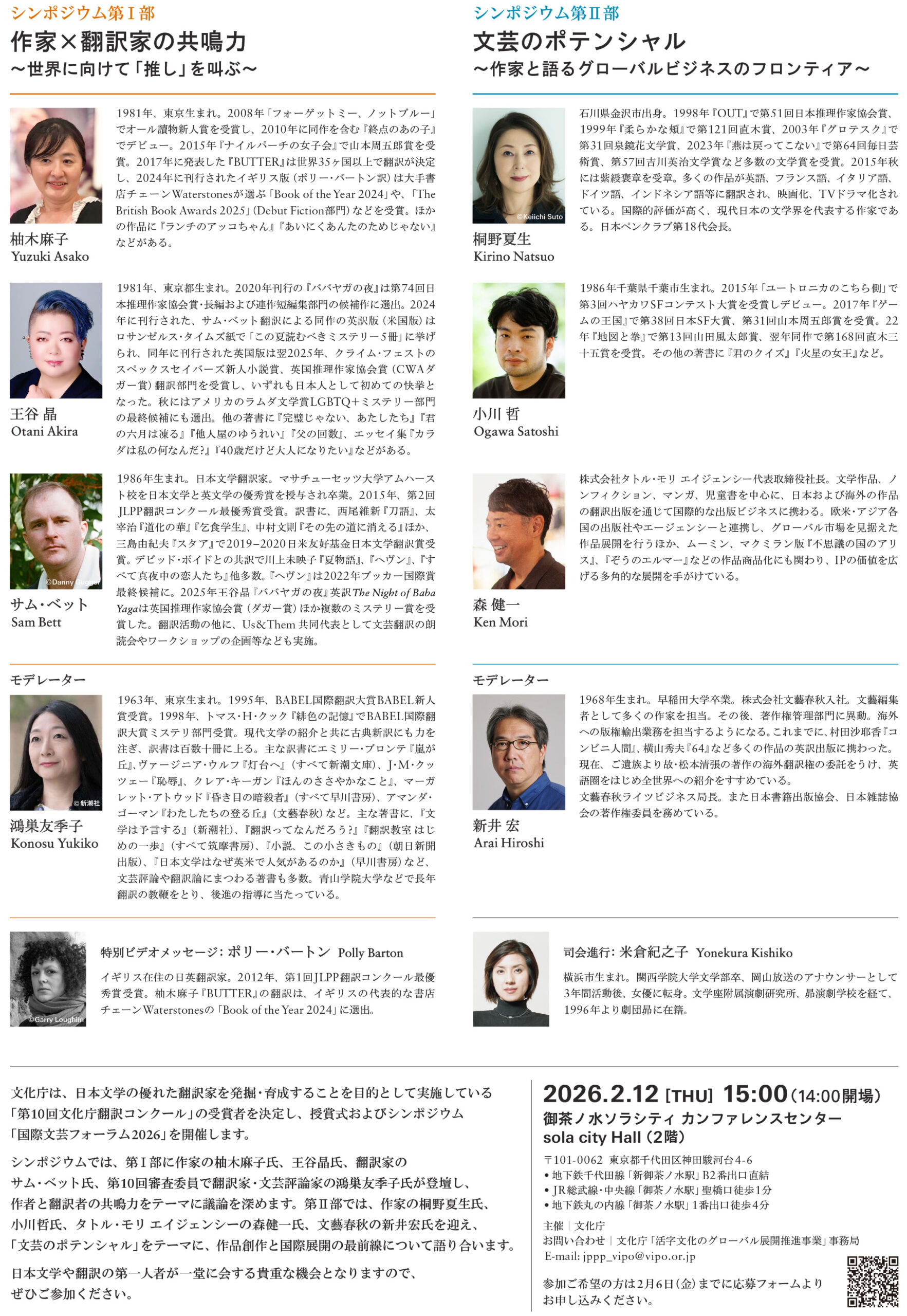 主 催 文化庁 https://www.jlpp.go.jp/literaryforum2026/